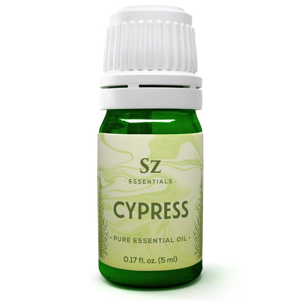 Sz Essentials - Cypress Essential Oil (Cupressus sempervirens) - 100% Pure & Undiluted - Fresh Crisp & Woody Aroma with Overtones of Earth and Evergreen - Therapeutic Grade and Vegan - 0.17 oz (5ml)