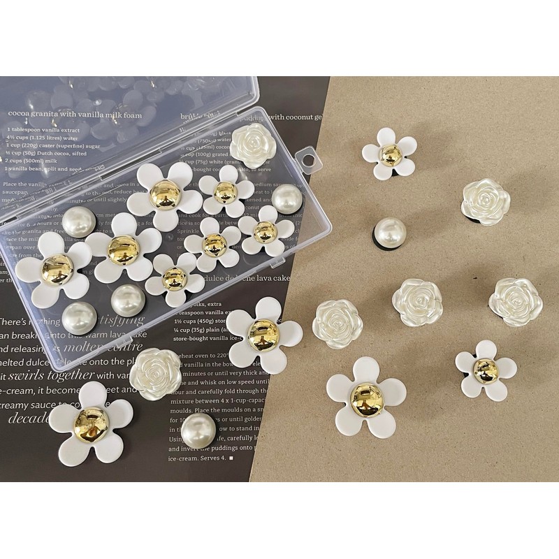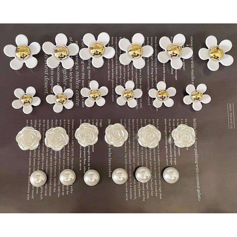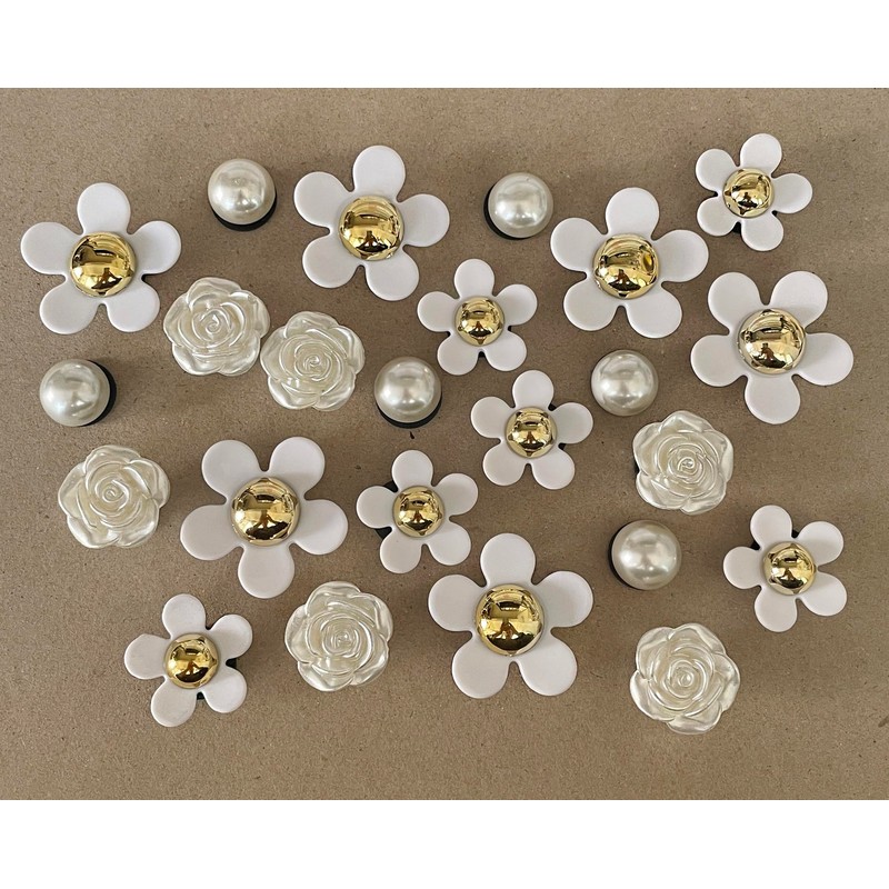 Szcelling 24Pcs Flower Charms for Bogg Bag Accessories 6 Pearls 6 White Flower Decoration Compatible with Rubber Beach Bag Daisy Women Tote Handbag Inserts 6 Mini Rose DIY Decorative Tool Set