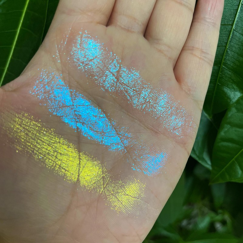 - Perfect Color Shifting — our Duo-Chrome eyeshadows are out of this world! When viewed head on there only appears to be one color, however, color shifts become visible when viewed at different angles on a rounded surface (such as an eyelid) and in different lighting. Truly the magnitude of these pigments cannot be portrayed through photos alone!