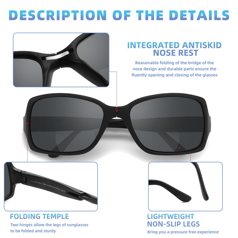 - All-in-One Complete Set - Includes bifocal reading sunglasses, a portable protective case and a microfiber cloth. Combines HD optics, scratch-resistant lenses and uncomplicated support for versatile everyday use.