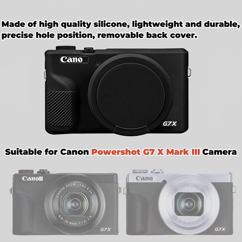 SZHSYJY Case for Canon Powershot G7 X Mark III Digital Camera,Soft Silicone Case for Canon Powershot G7X Mark III DSLR Camera,Comes with 2 Screen Protectors and 1 Wrist Strap. (Black)