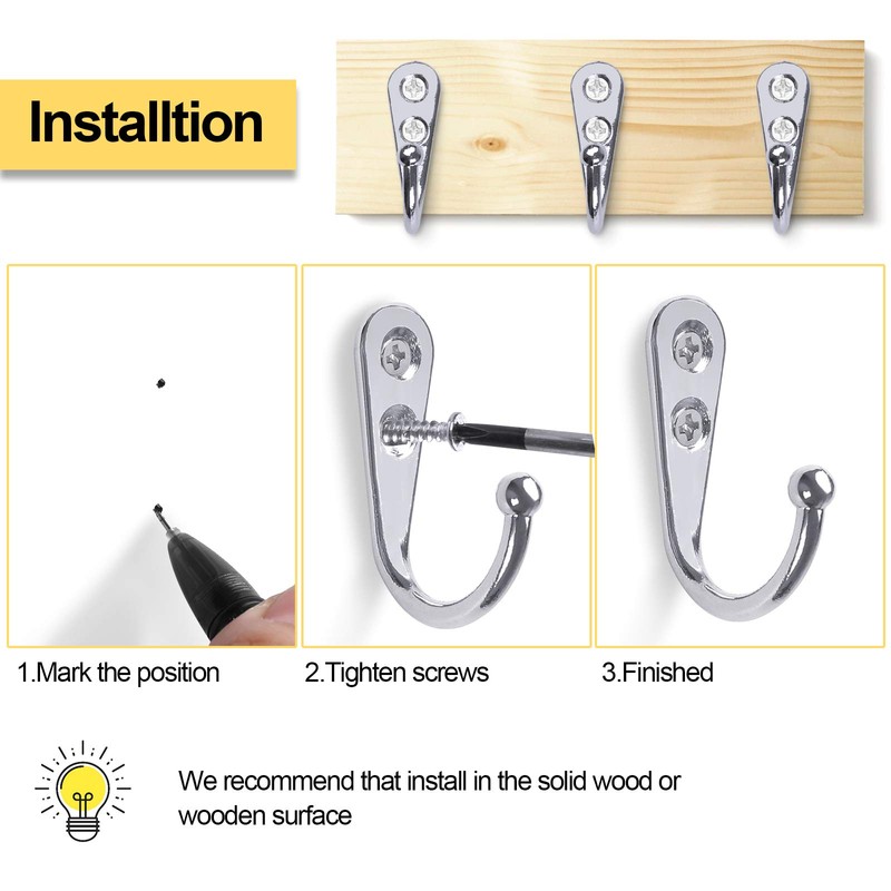 - 【Easy Installation】: Reinforced with 2 screws, these hooks are a breeze to install. Suitable for different surfaces, with wood being the ideal choice.