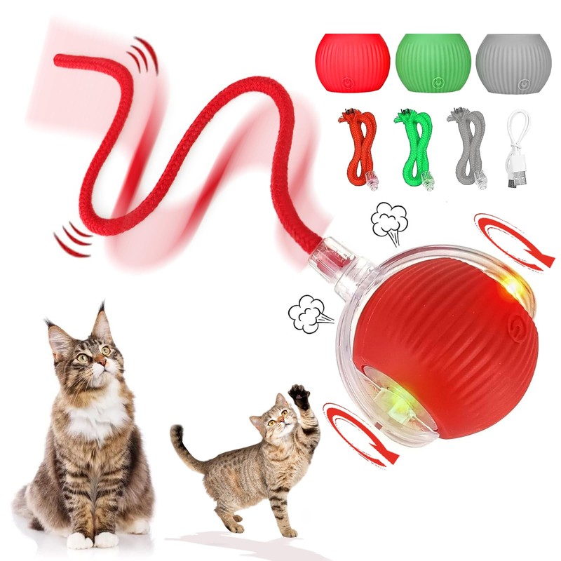 - 【𝟑 𝐂𝐨𝐥𝐨𝐫 𝐑𝐞𝐩𝐥𝐚𝐜𝐞𝐦𝐞𝐧𝐭】This kitten toys is equipped with three different colours of replaceable tail rope and silicone soft shell, the tail rope and soft shell are easy to dirty when cats play, just simply replace it, you can always keep the cat toys clean and tidy. Even if the tail rope is accidentally damaged, it can be quickly replaced, so that the ball is always as good as new, and will be a long-lasting companion for your cat's fun time
