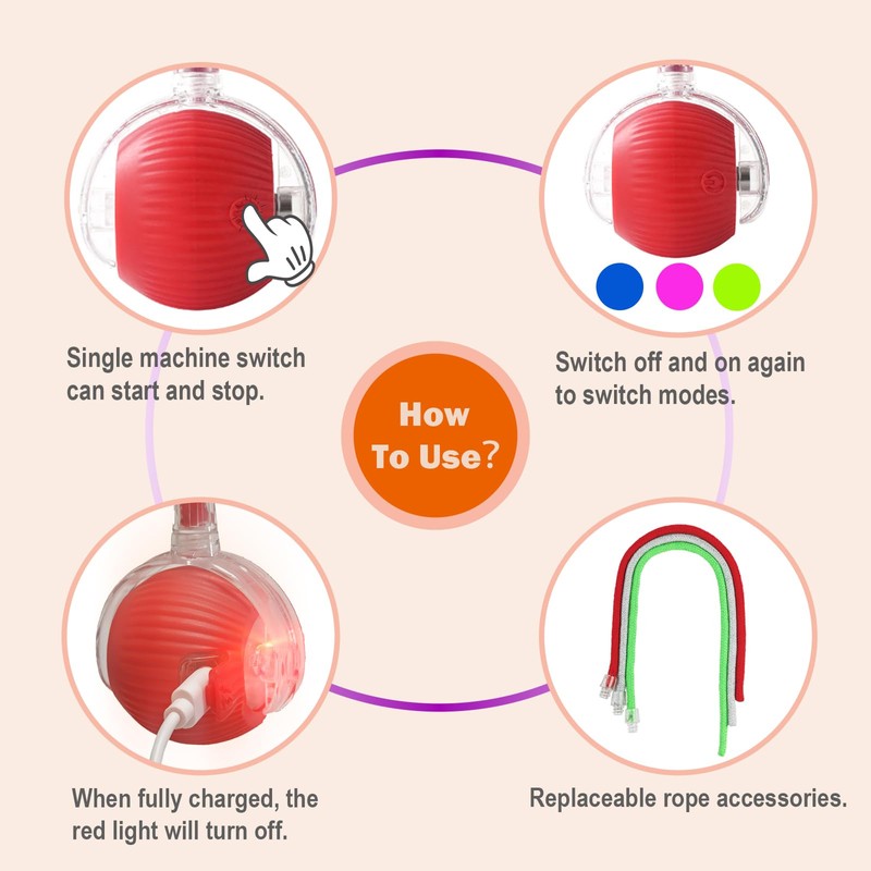 - 【𝐈𝐧𝐭𝐞𝐫𝐚𝐜𝐭𝐢𝐯𝐞 𝐂𝐚𝐭 𝐓𝐨𝐲】 Press the button and the cat ball rolls instantly. By simulating the irregular movement trajectory of living creatures, it fully stimulates the natural hunting instincts of cats and dogs, allowing them to play to their heart's content and enjoy hours of stimulating entertainment, effectively dispersing the boredom of your pets and allowing them to consume their excessive energy, thereby protecting your furniture from pet damage