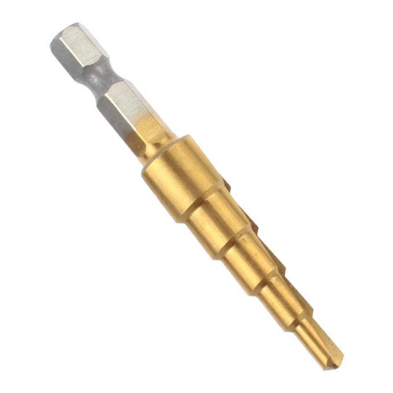 SZMM Titanium Cone Drill Bit Hole Cutter, 0.1 - 0.5 inches (4 - 12 mm), HSS Pagoda Step Drill Hole Cutter