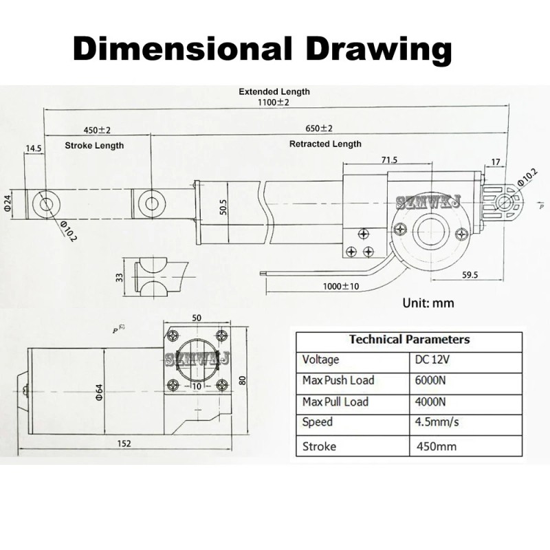 - Linear Actuator Stroke Length: 450mm/18 Inch