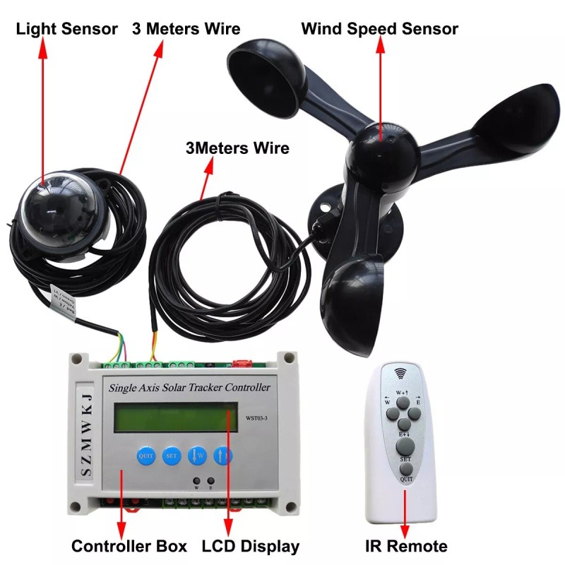 SZMWKJ Solar Tracker LCD Controller + Wind Speed Sensor DIY Single Axis Solar Sun Track