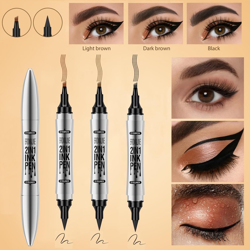 - 2-in-1 design: the unique eyebrow pencil with two ends allows you to achieve the effect of two eyebrow pencils. The dual end eyebrow pencil is a liquid eyebrow pencil with four forked tips on one end and an eyeliner at the other.