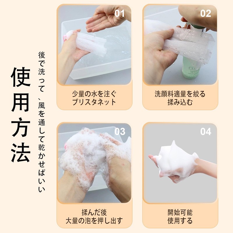 - A foaming net for creating dense bubbles that can be used for face washing and body