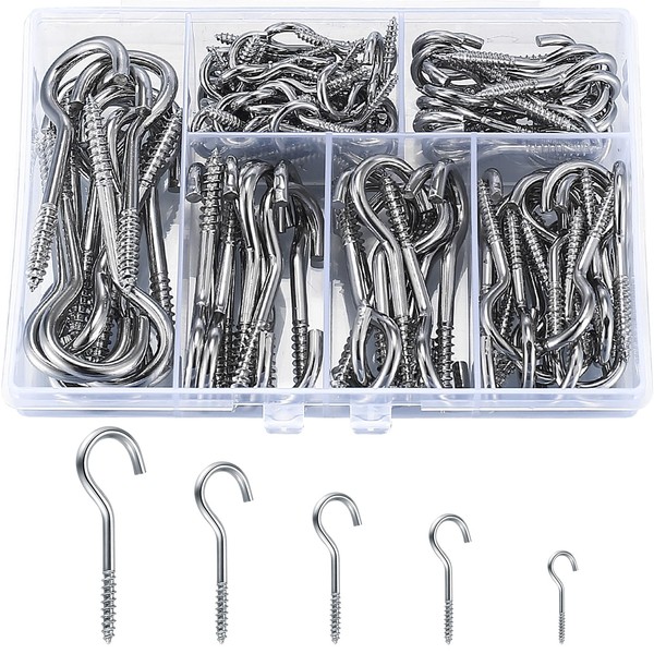 SZSLMY Pack of 115 Screw Hooks, Stainless Steel Ceiling Hooks, Cup Hook Screws with Wood Thread, Screw Hooks, Hooks for Screwing Metal for Hanging, for Hanging Plants, Tea Cups, Keys