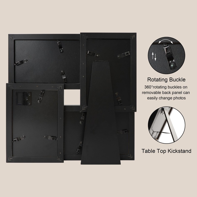 - Design: Holding up to four 4x6-inch photos, this multi picture frame is perfect for displaying cherished memories, family photos and holiday snapshots. To prevent photos from sliding out, the appropriate photo size can be up to 0.5 inches larger than the frame opening