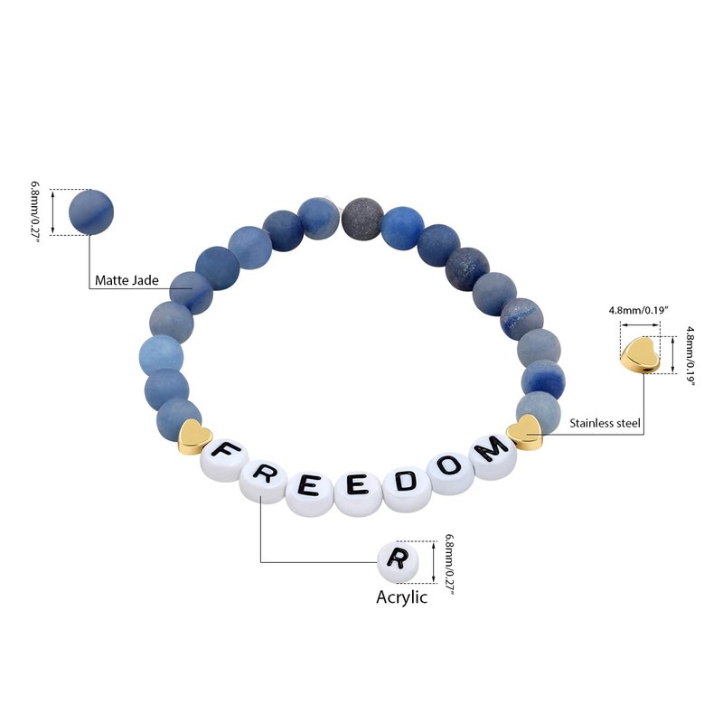 T Brand Alphabet Initial FREEDOM Bracelet, Natural Matte Aventurine Blue Beaded Bracelet (Blue, 17cm/6.7inch)