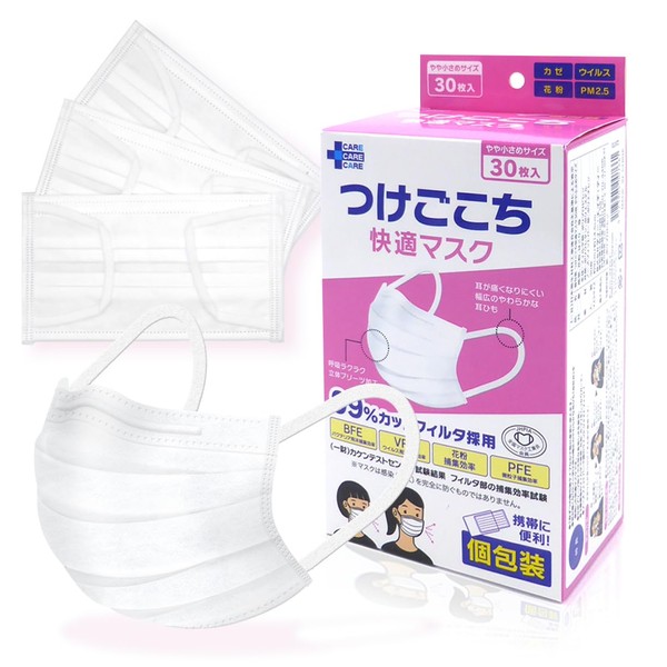 T.H.T Comfortable Mask, Slightly Small Size, Individually Packaged, Non-woven Fabric, Pleated Type, 30 Pieces