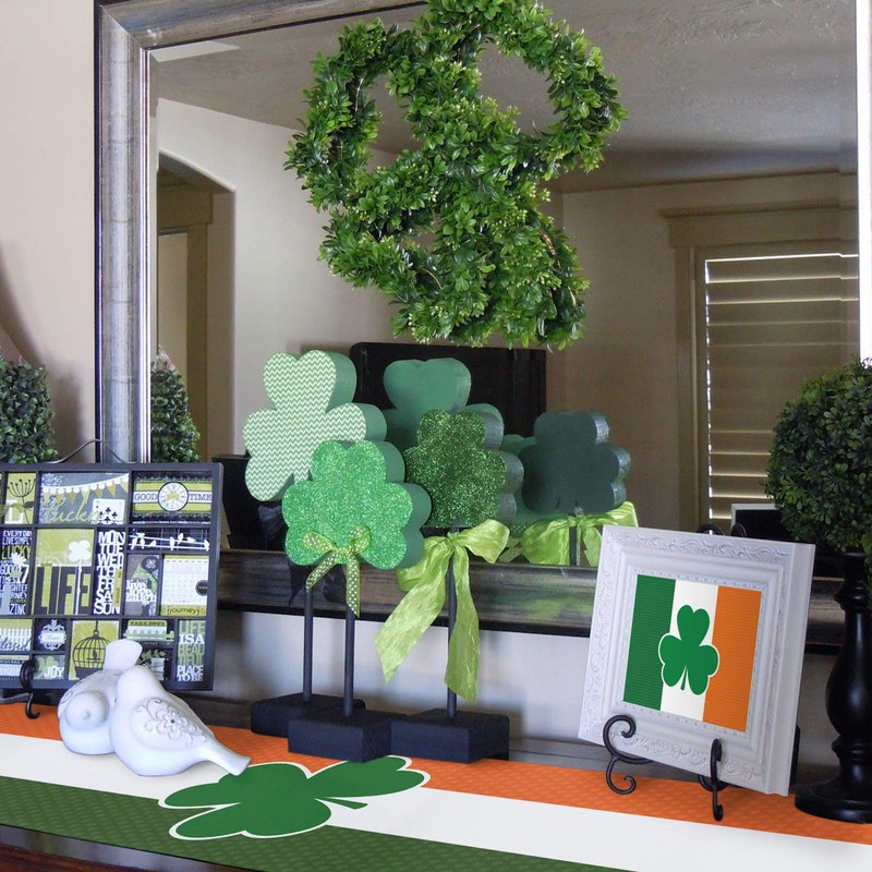T&H XHome Durable Fabric Table Runner,St. Patrick's Day Irish Flag and Green Clover Washable Linen Table Runners for Home/Kitchen/Dining Table/Indoor & Outdoor Decor 13x70Inches