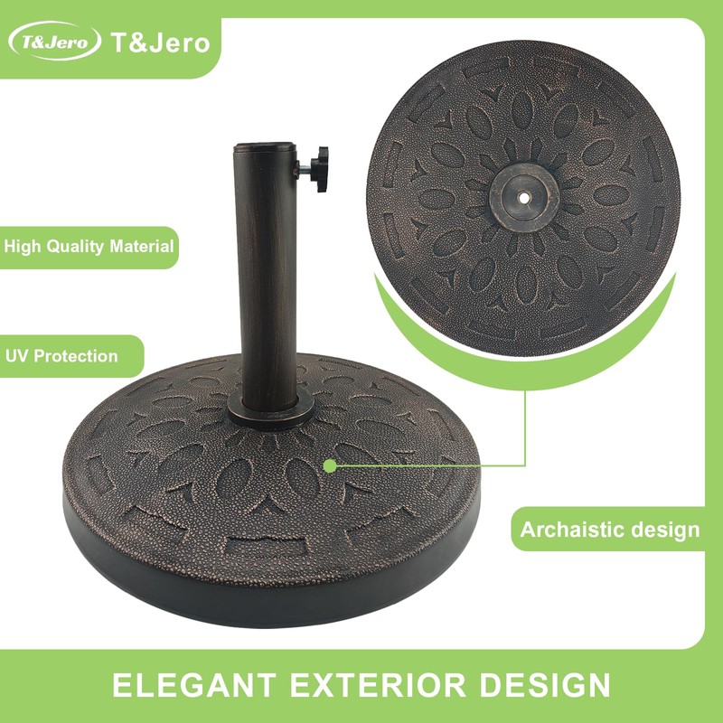 T&Jero 26 lb Round Heavy Duty Patio Market Table Umbrella Base Stand Pre-Filled for Outdoor, Bronze