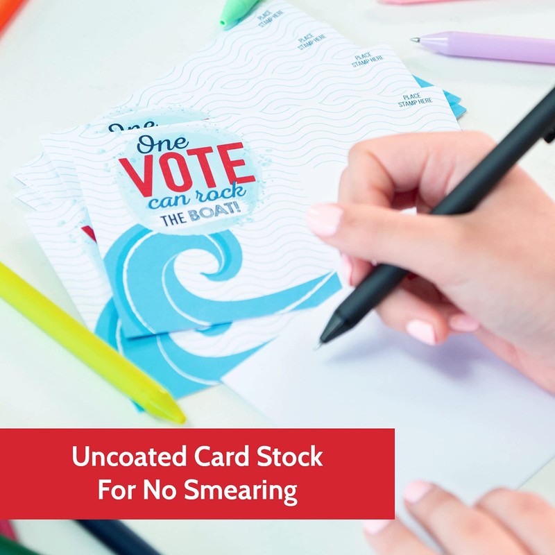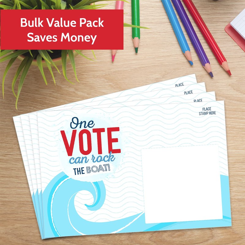 T MARIE 100 Bulk Voter Postcards 4x6” - One Vote Can Rock the Boat - Red, White and Blue Theme With Blank Back for Message to Voters - Encourage Voting In Your State