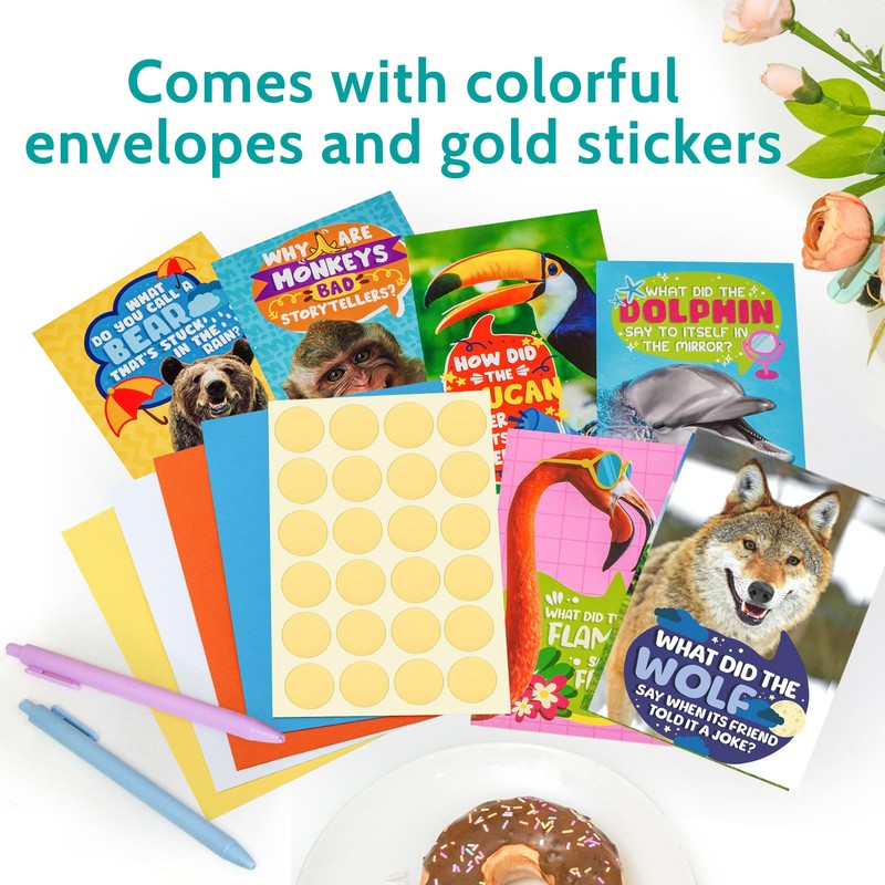 - CARDS YOU'LL BE EXCITED TO SEND - Forget bland, generic cards! With adorable animals, funny jokes, and durable cardstock, you'll love choosing just the right card for each recipient. Imagine their smiles and chuckles when they open the card! Whether slipped into lunchboxes or care packages, or sent on their own, these colorful, funny cards turn everyday moments into delightful surprises and bring people closer together.