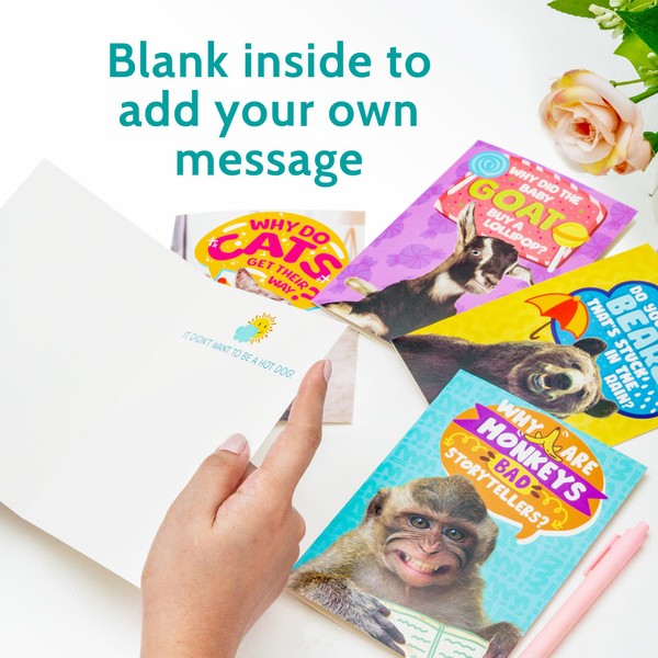- GREAT FOR ALL AGES - From uplifting puns to silly dad jokes, these cards are made to bring joy to everyone! Whether you're sending a laugh to a child, a grandparent, or a friend, the playful animal designs will brighten anyone's day. Ideal for grandchildren, nieces, nephews, students, family, and animal lovers, these cards are a fun and easy way to spread some happiness to those you care about.