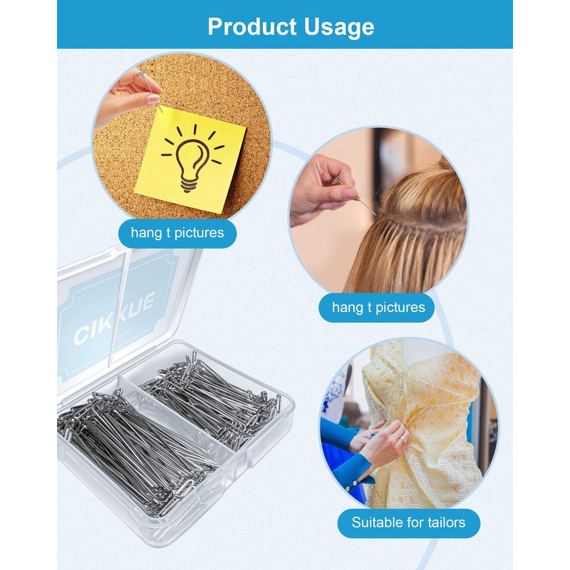 CIKKUE 150 pcs Steel Wig T Pins are made of high-quality steel with nickel plated finish and the sharp tip can be easily inserted into fabric and wig piece.