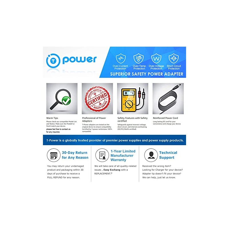 T-Power Made with Lithium-ion Batteries with 6.6 FEET LONG CABLE Power Supply Charger , Brand-new Input Voltage Range: AC 100V - 240V - - ( 25 ~ 27V DC - Compatible ) - HCX1501-2700500U HCX15012700500U