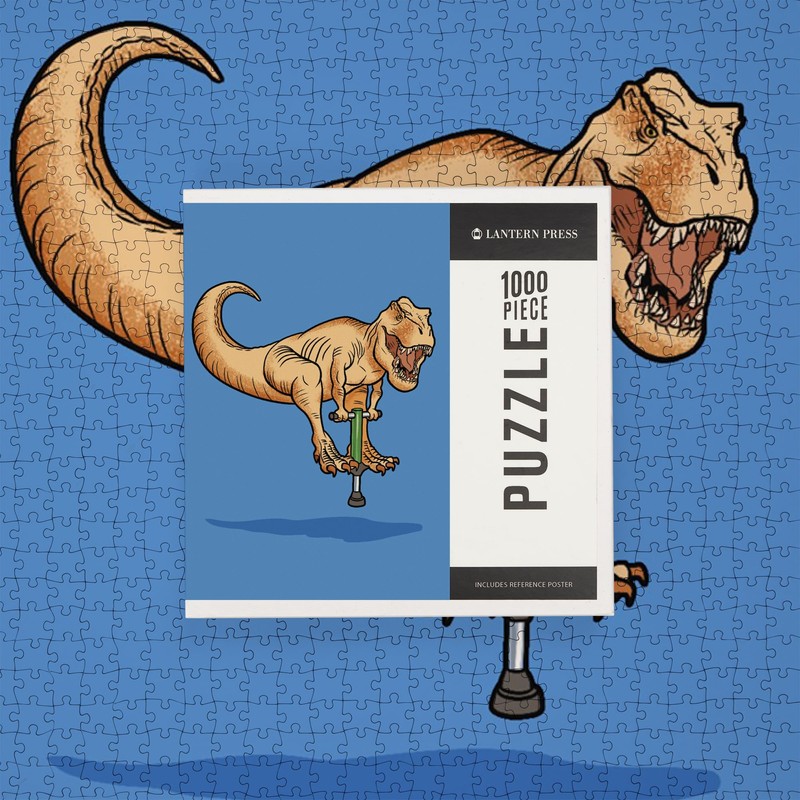 - T-Rex and Pogo Stick (1000 Piece Puzzle, Challenging Jigsaw Puzzle for Adults, Made in USA).