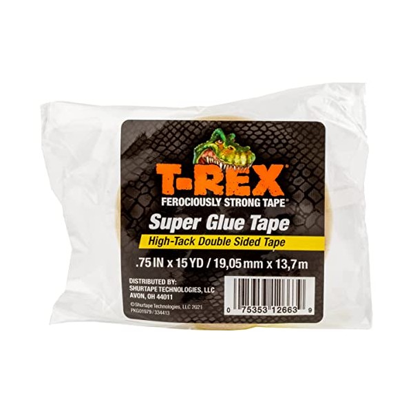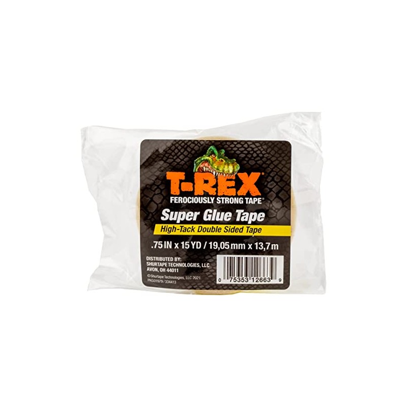 T-Rex T-Rex Double Sided Super Glue Tape, 0.75" x 15 Yards, Clear, 1 Pack (28...