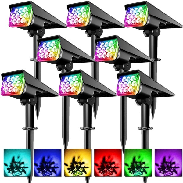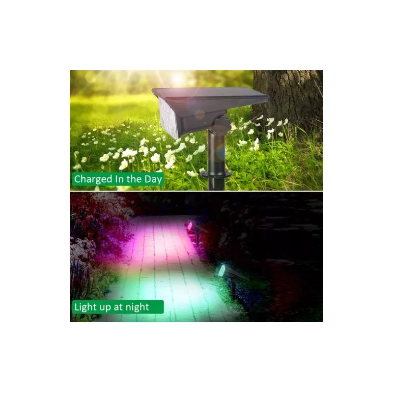 Color Changing Solar Landscape SpotlightSun-Powered Spotlights, saves tons of energy compared to electric spotlights. Just stick it to the ground and let it works. | Purple Solar SpotlightExhibit anything on your wall, in your driveway, and anywhere in your backyard with the ultra-bright LEDs’ 120° light throw. See everything in a beautifully curated way. Bring life to trees and outdoor scenery at night. Easily see cars coming in, pets running around, or strangers lurking. Simply enjoy your outside space even after sundown. | RGB Solar Spot LightPlease Note: