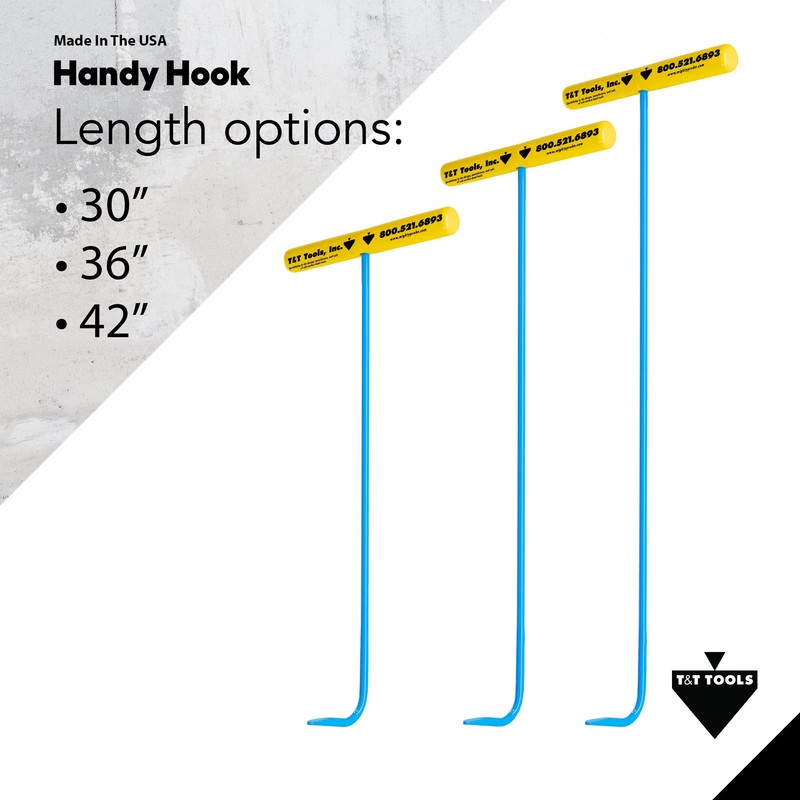 T&T Tools Handy Hook Lifting Tool – 42 Inch Single Hook End Made with 3/8" Steel - Heavy Duty Lifting Hooks, Lift Manhole Covers, Storm Drain Cover Rigid Steel Tool Hook for Moving Lifting and Pulling