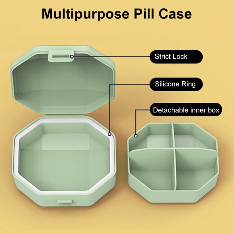 - 【MOISTURE PROOF & PROTECT PILLS 】: With the thickened silicone ring surrounded, can keeps your travel pill case closed tightly and prevent your pill from moisture and dust, so you can take fresh pills every day and say goodbye to damp pills