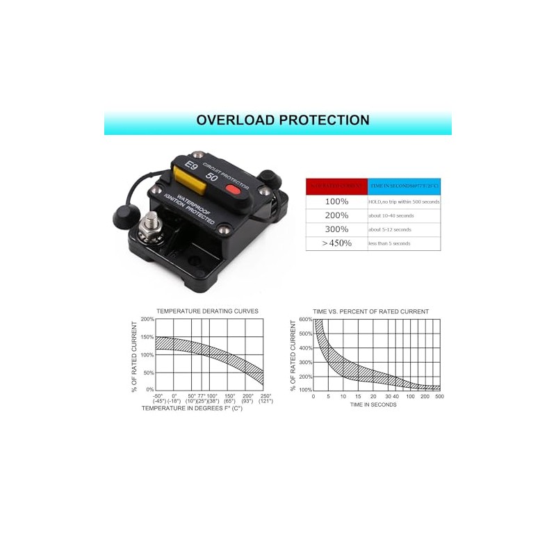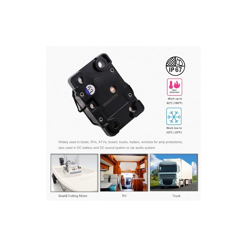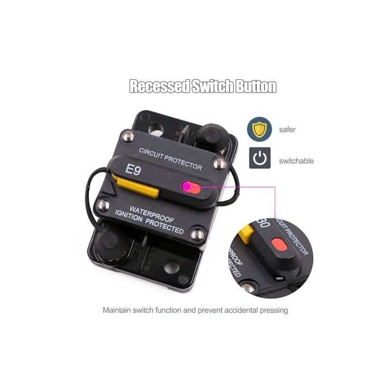 T Tocas T Tocas 60 Amp Trolling Motor Circuit Breaker with Recessed Switch Design for Boat Marine ATV | Waterpoof IP67 Protection with Manual Reset DC 12V-48V 60A
