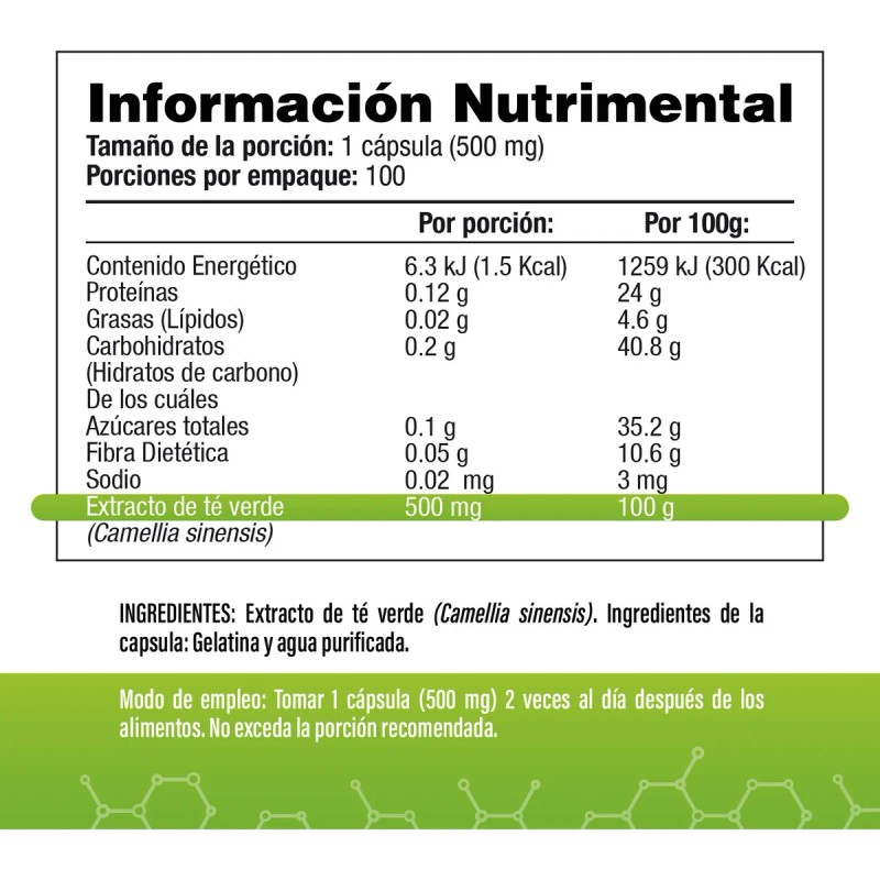 T Verde Extracto 1000 mg por porcin (2 Cpsulas) - 100 Cpsulas - SV - Sin Gluten y Sin OMG - Producto Original de Alta Calidad, Entrega Rápida y Segura