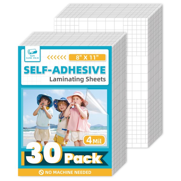 T&W SAME FILM 30 Pack Self Adhesive Laminating Sheets, 4mil, 8 x 11 Inch Laminator Sheets, Self Sealing Laminating Sheets for Laminator, Round Corner, No Heat, No Machine Needed