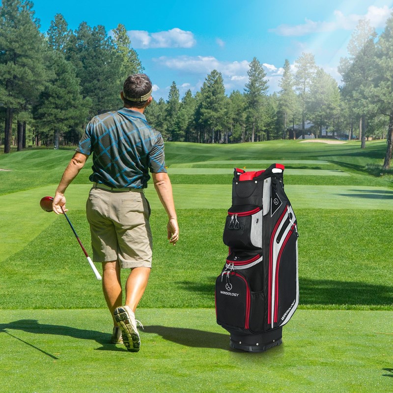 - 【11 Pockets, Organized】Includes a cooler pocket, a clothing pocket, a waterproof zippered valuables pocket, and multiple other useful organizers. Multiple pockets are designed to enhance your organization and provide plenty of space to store your golf essentials.