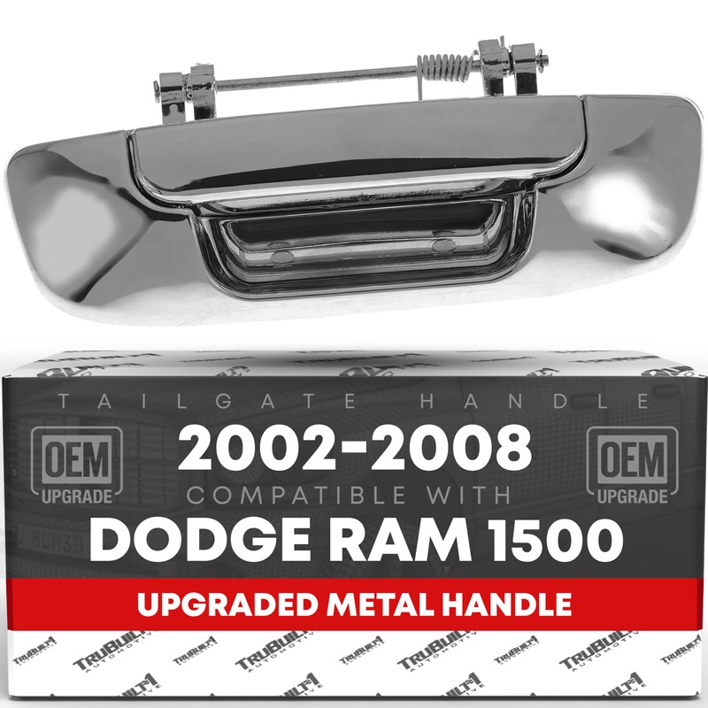 T1A Tailgate Handle Assembly, Upgraded Metal - Compatible with 2002-2008 Dodge Ram 1500, 03-09 Dodge Ram 2500, 03-09 Ram 3500 - Exterior Tailgate Latch, All Chrome - OEM 55276237AA-ACHMT, 80165