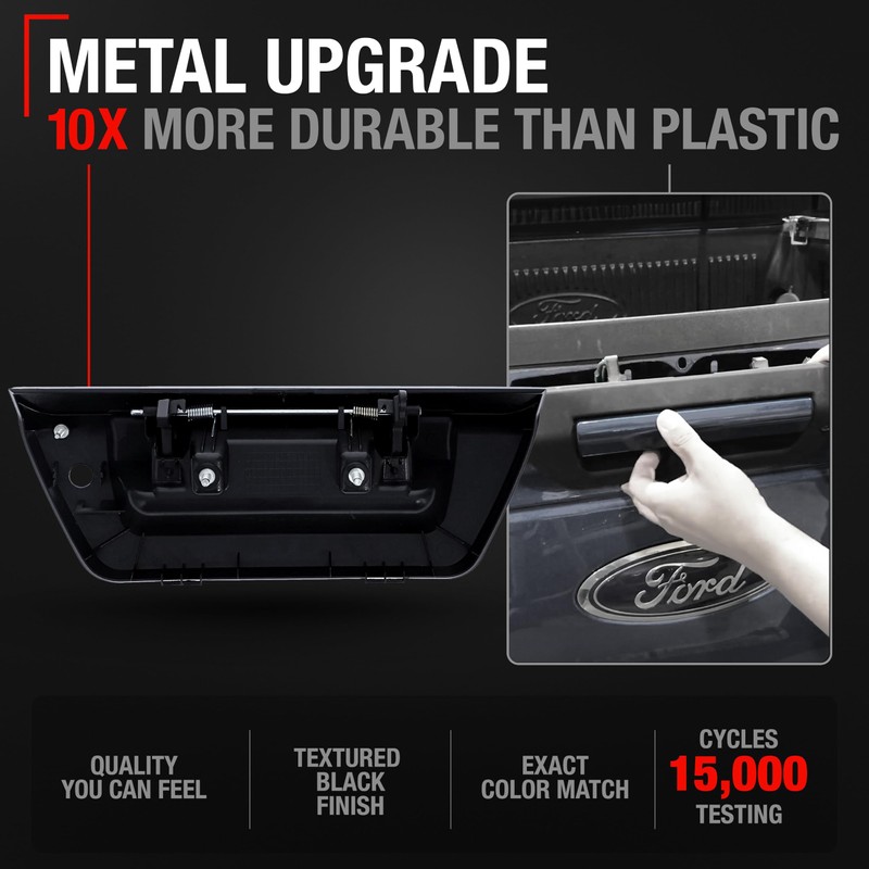 T1A Tailgate Handle Assembly, Upgraded Metal - Compatible with 2015-2020 Ford F-150 - Liftgate Latch Handle Replacement - Textured Black w/LED Hole, No Camera Hole - OEM FL3Z-9943400-HA, 97695