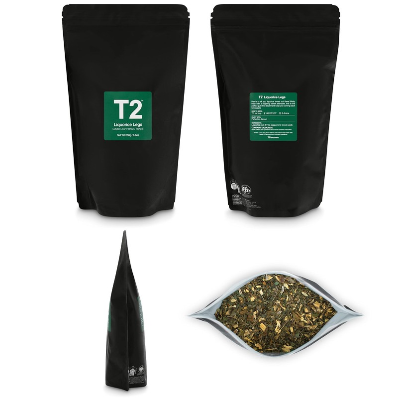 - 250 grams (8.8-ounce) of loose leaf liquorice tea, with fennel and peppermint, sealed fresh in a black resealable foil pouch; Use it to refill your T2 Tea tea caddy; Store in a cool, dry place