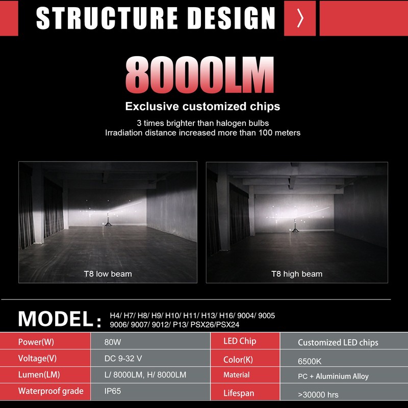 • LOW TEMPERATURE LED CHIP: 8 LED Flip Chips per bulb, integrated Smart Drive Heat Protection, and High Speed Fan.
