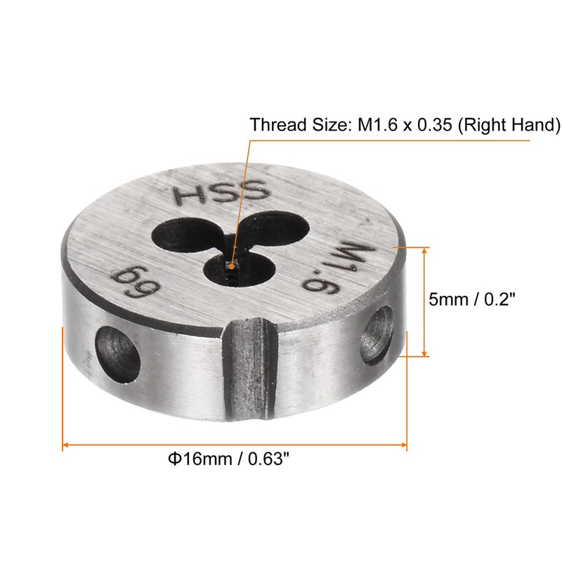 - [Größe und Paket] Rechtshänder; Gewindegröße:M1.6*0.35mm; Außendurchmesser (OD):31mm / 7" (einstellbar); Dicke:15.5mm / 6.37"; Paket enthält 1pc metrisch einstellbare runde Schneideisen