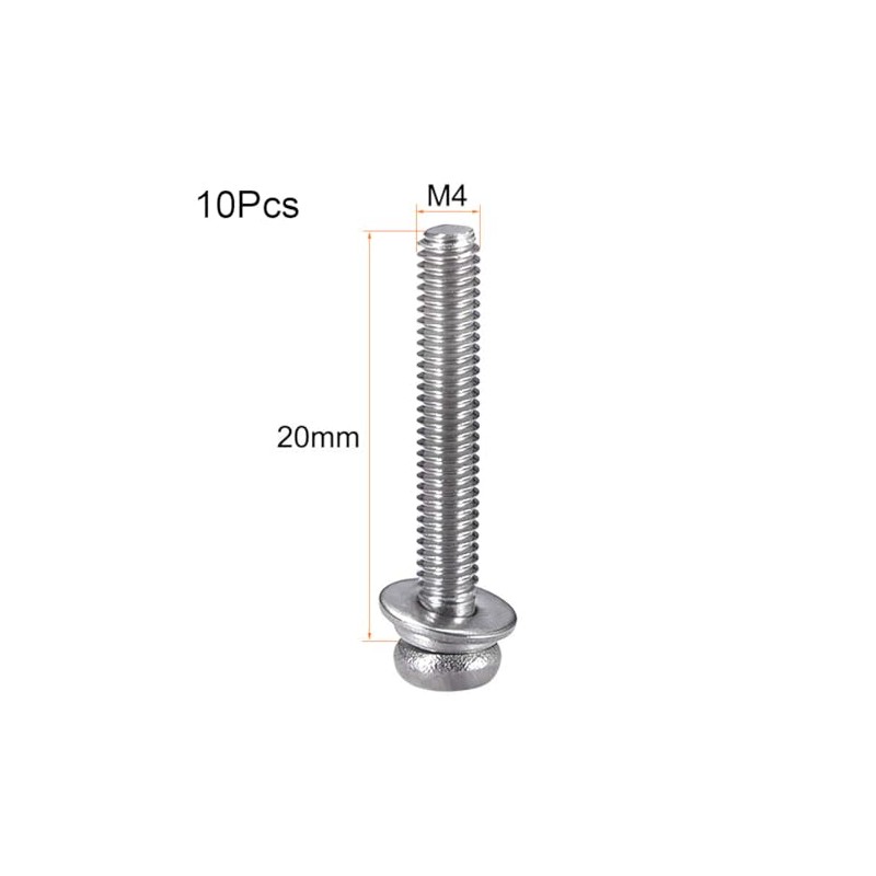 - 【Size and Package】Drive Type: Phillips; Head Style: Pan Head. Dimension: M4 x 20mm; Package includes: 10 sets M4 x 20mm phillips pan head machine screws (each set includes 1 x screw, 1 x spring washer, 1 x flat washer).