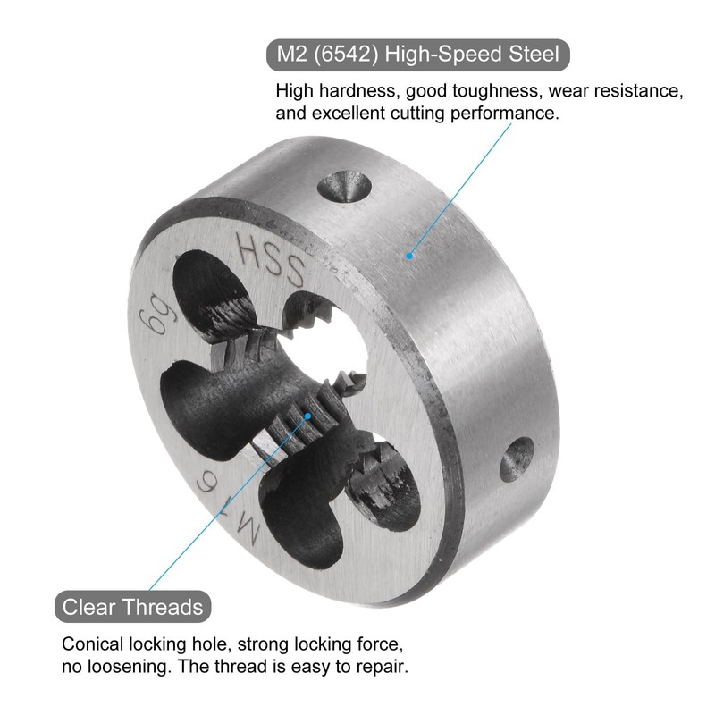 - [HSS Construction] The round threading die is made of premium high speed steel, ensuring high hardness, sharpness and wear resistance. Its pre-lubricated surface effectively prevents corrosion. Perfect for restoring damaged threads or cutting new threads.