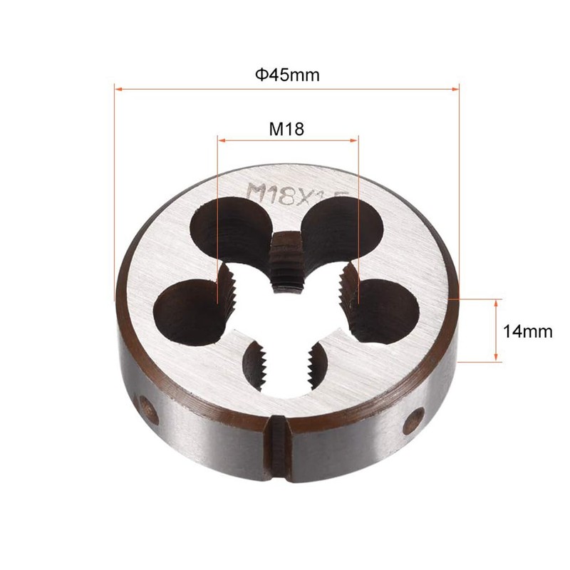 - [Size and package] thread size: M18 x 1.5mm; outside diameter (OD): 80mm / 56" (Adjustable); thickness: 64.5mm / 55.37"; Package includes 1pc metric adjustable round die.