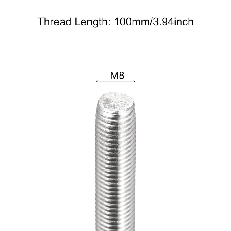 - 【Specification】: Thread Dia.: M8; Total Length: 100mm / 3.94"; Thread Style: Right Hand; Thread Pitch: 1.25mm. This pack includes 4pcs fully threaded rods.