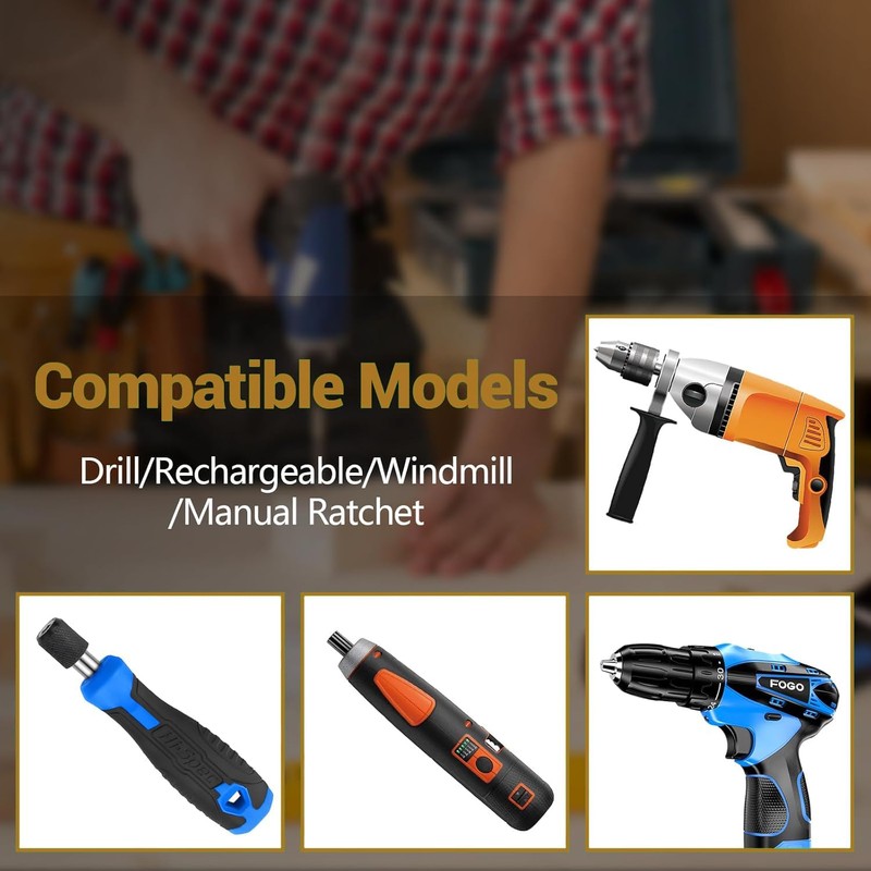 - 【Compatible with Most Drivers】1/4 inch quick release hex shank driver bits is suitable for electric screwdrivers, manual screwdrivers, electric drills, air drills, etc. Can be used in engineering, machinery, maintenance of household appliances and other production lines. And you can repair your furniture with these tools in an easy way.