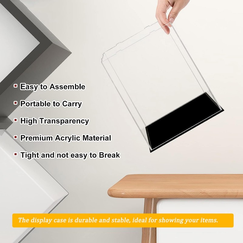 • EASY TO ASSEMBLE & CHOOSE Just connect the sides, top and head. (with transparent rubber ring), the edges are smooth and the acrylic case fits perfectly to the base. Besides, you only need to measure the height/length and depth/width of your figure before purchasing, then you can order the display case size you need.