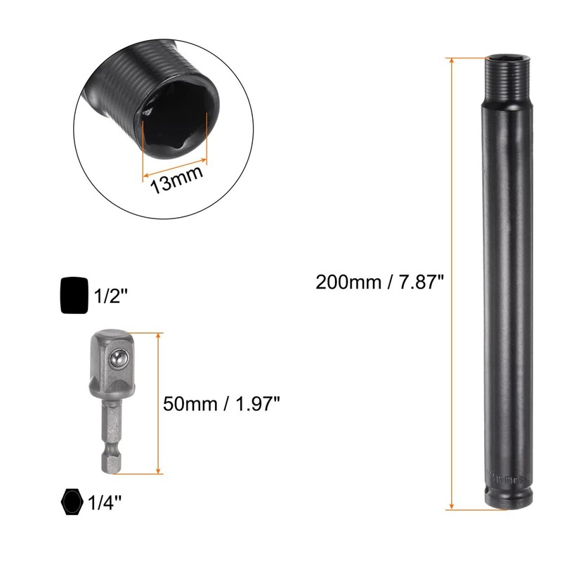 - 【13mm Deep Well Socket】200mm extra-long shaft provides extended reach for nuts located in tight, high, or recessed areas—perfect for ceiling, duct, and overhead installations