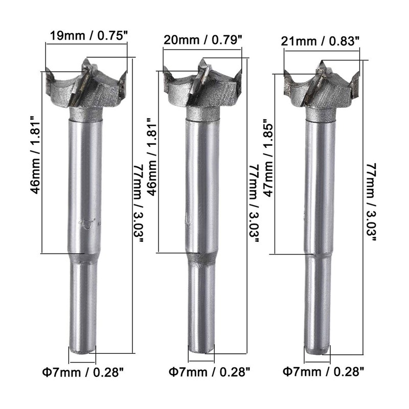 - Package Contents - 19mm 20mm 21mm woodworking forstner drill bits, use with bench drills, vertical drill presses, CNC routers.