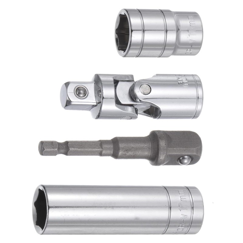 - Komplettes Steckschlüssel-Zubehör-Set: Dieses 4-teilige Steckschlüssel-Set enthält 17 mm flache und tiefe Stecknüsse, Universalgelenk und einen 1/4-Zoll-Sechskantschaft-Schlagadapter, der entwickelt wurde, um die Vielseitigkeit Ihres Schlagschraubers zu verbessern