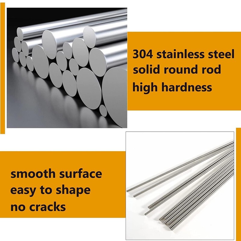 - MaterialHigh hardness 304 stainless steel, strong rust-resistant and corrosion-resistant, sturdy and durable. Easily welded or formed. Metal bars are chamfered on both ends and polished, easier to install linear bearings, and won't hurt fingers when installing it.