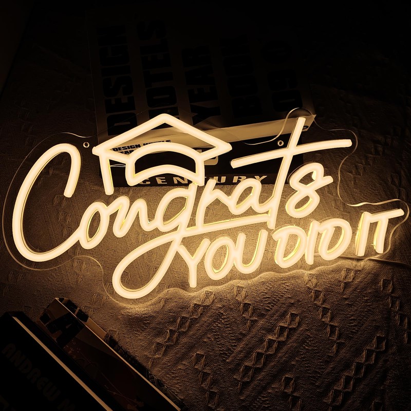 Light up "you did it" with graduation cap neon letter sign, making a different magic in celebration banquet, graduation party, college graduation, retirement, classroom, dormitory. Good as graduation gifts for graduate/kids/friends/retirees.
