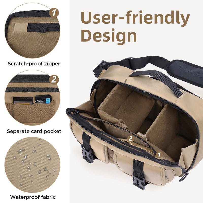 TAAOKA Camera Sling Bag,SLR/DSLR Camera Case with Tripod Holder,Waterproof Camera Shoulder Crossbody Bag for Photographers (Coffee)